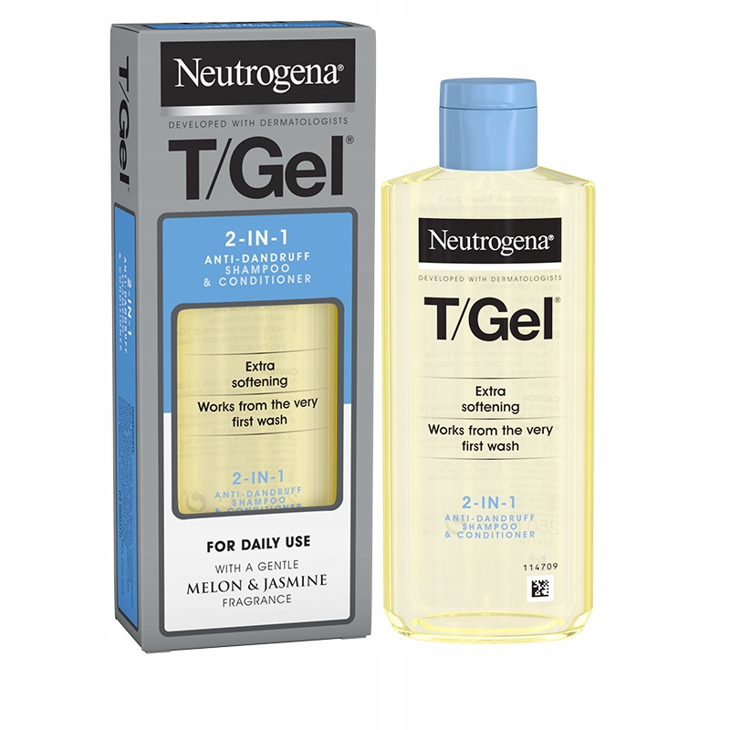 Szampon i odżywka przeciwłupieżowa 2 w 1 Neutrogena T/Gel to formuła do częstego stosowania, która pomaga zwalczać łupież i zapewnia dodatkowe właściwości zmiękczające, nadając włosom zdrowy, miękki i lśniący wygląd.